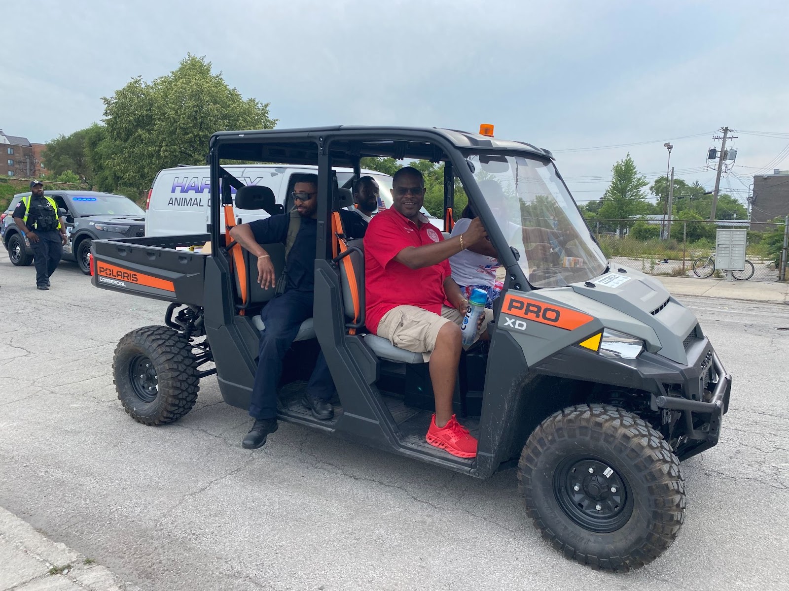 The caravan began at 153rd Street and Page Avenue, turned east on 154th Street before heading north on Broadway Avenue, where residents were treated to a carnival, which included food trucks and bouncy gyms.