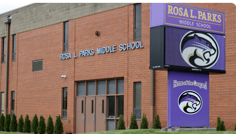 Rosa L. Parks Middle School in Dixmoor is among the lowest performing five percent of schools in Illinois, according to annual ratings released by the Illinois State Board of Education this fall. Screenshot from West Harvey-Dixmoor School District 147 website