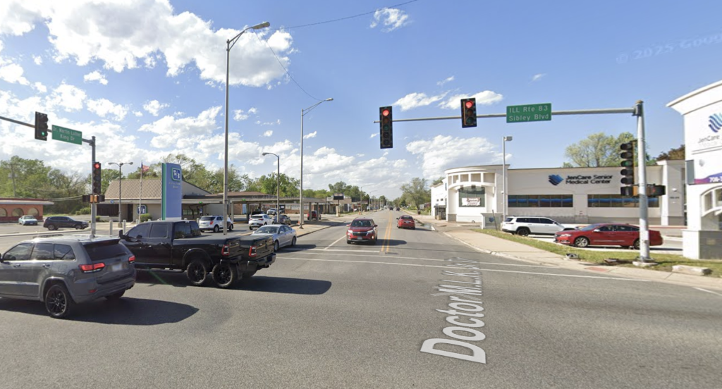 Martin Luther King, Drive in Dolton, as shown facing north. Screen grab from Google Maps